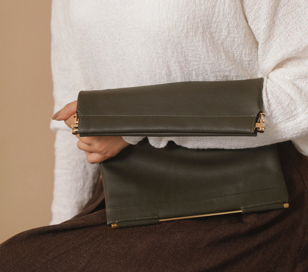 • Foldable Clutch, Spacious, Brass Hardware