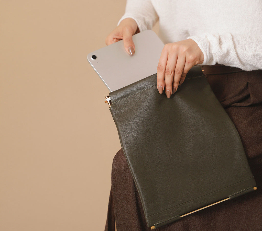 • Muse Clutch Large offers a spacious interior suited for your tablet, phone, keys, and daily essentials, making it ideal for work meetings, gallery visits, lunch engagements, or evening plans that call for a refined carry