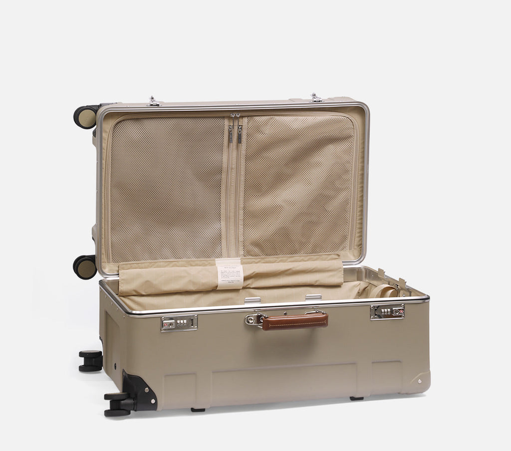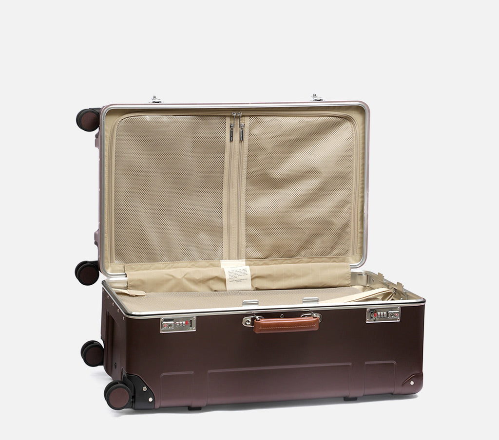 The Wingman Trunk by Nappa Dori is the largest expression of the Wingman series—made for those who travel without limits. Designed to carry more while remaining easy to manoeuvre, its aluminium frame provides exceptional strength with a refined silhouette. Designed in polycarbonate hardshell with classic leather accents and a customisable name tag, it’s designed for journeys that demand space, strength, and unmistakable character.
